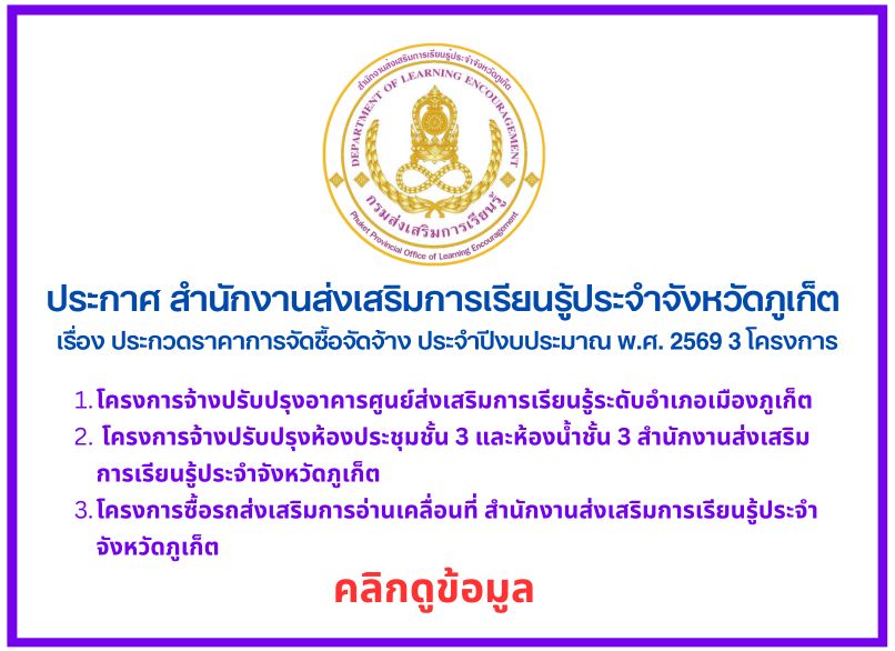 ประกาศ สำนักงานส่งเสริมการเรียนรู้จังหวัดภูเก็ต 25 / พ.ย. / 2568