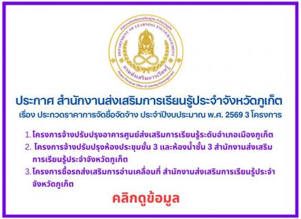 1.โครงการจ้างปรับปรุงอาคารศูนย์ส่งเสริมการเรียนรู้ระดับอำเภอเมืองภูเก็ต